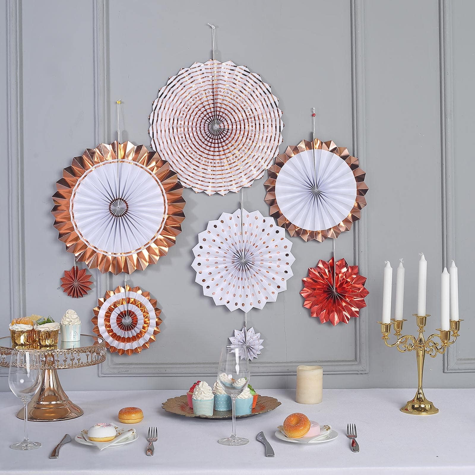 Efavormart Set Of 8 Rose Gold Gold Paper Fan Decorations Paper Pinwheels Kit 4 8 12 16 Walmart Com