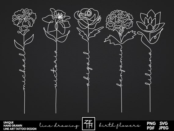 Custom Name Long Sleeve Birth Flower Tattoo Design Line Art Etsy Canada